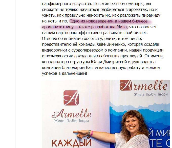 Заходишь в группы Партнеров компании начинаешь знакомиться с инфой, и рука тянется отписать: «Забудьте все, что вы знаете об Армель. Читайте Матвеева»!